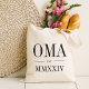 A modern minimalist tote bag to celebrate a chic grandma, this clean minimal tote features "Oma" or your choice of grandma nickname in black serif lettering. Customize with the year she became a grandmother beneath in elegant roman numerals for a chic touch.
