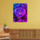 A stunning LION with a beautiful Mane is ABSTRACT GRUNGE BOLD MAGENTA PINK PURPLE TURQUOISE BLUE and with GOLD GLITTER STARS.