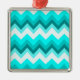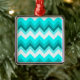 Ombre Girly Pattern Teal Turquoise Chevron Metal Ornament