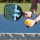 Luxury Pickleball Paddle featuring glitterid zebra print, blue bow and your monogram.