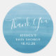 This round baby shower sticker features a soft blue ombre watercolor background with elegant white script and serif text reading “Thank You.” Personalized with the guest of honour’s name and event date, it's the perfect touch for sealing favour bags, envelopes, or party treats. Ideal for boy baby showers or gender-neutral celebrations with a modern, calming aesthetic. A sweet and stylish way to show your appreciation.