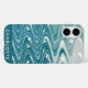 Protect your phone in style with this stylish abstract waves pattern in ombre teal blue, personalized with your name.