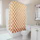Shower curtain featuring a pattern of cream and ombre terracotta checkers.