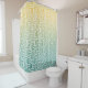 This art ombre deco-themed shower curtain design features a turquoise and yellow ombre pattern with a custom white background.
