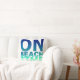 This typography ocean pillow features bold letters from an ocean photograph. The range of blues goes from dark to bright turquoise. Available in size 16 x 16 and 20 x 20.