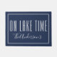 Remind your guests they are ON LAKE TIME with this blue door mat features white typography