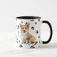 An adorable Pembroke Welsh Corgi Dog looks out at you on two sides of this mug. The text between the two images says "On the 8th day, God created the CORGI and called it VERY GOOD". The dog images and the white oval banner containing the text fields are placed on a white background with black paw prints. Cute!