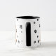 A beautiful Goldendoodle dog looks out at you from two sides of this mug. The text between the two images says "On the 8th day, God created the GOLDENDOODLE DOG and called it VERY GOOD". The dog images and the white oval banner containing the text fields are placed on a white background with black paw prints.