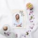 A modern and elegant class of 2022 graduation announcement design that frames your vertical or portrait-oriented photo in a rose gold foil-trimmed arch, with your graduate's name and school along the sides, and the graduation year at the upper left. Personalize the back with an additional photo and a personal message.
