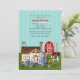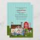 A charming farm invitation, for an older child with lots of detail, featuring the farmer and his wife on the farm. (Pixabay.com/en/barn-flowers-farm-farmer-pot-silo-158330/. Rooster by Vecteezy - Freevector.