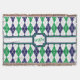 Argyle goes 8-bit with this classic navy blue, kelly green, and white colour scheme with a light grey contrast stitch creating a perfect pattern for the golf course. Customize the initials on this throw to make it your own.