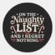 On The Naughty List And I Regret Nothing Christmas Classic Round Sticker