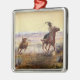 Charles (CM) Russell, the “cowboy artist”, created more than 2,000 paintings of cowboys, Indians, and landscapes set in the Western United States. He lived and worked among the cowboys and the Blood Indian tribe in his younger years. This painting is called “On the Pond” and depicts a cowboy on horseback lassoing an escaped longhorn steer.