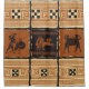 on the theme of Ancient Greece in form of a set of stone tiles, clay or ceramic tiles. Illustrations with Greek ornaments and ancient Greek soldiers with shields, spears, in a chariot