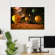 A surreal journey through a vast alien landscape beneath a star-filled sky, where glowing hot air balloons drift between distant planets. Tiny human figures emphasize scale and wonder, suggesting exploration, curiosity, and the quiet excitement of the unknown. This artwork blends dreamlike sci-fi elements with a sense of hope and movement, making it an inspiring statement piece for modern interiors, creative spaces, and imaginative minds.