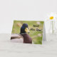 Un canard bleu et gris avec un bec jaune avec des mots disant que vous allez nous manquer fait une carte de canard mignon.