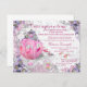 Once Upon a Time baby shower invitation with beautiful pink princess carriage on a gorgeous pink and purple floral sparkle background. This elegant and fancy fairy tale princess baby shower invitation is easily customized for your event by simply adding your details in the font style and colour and wording of your choice. This is a printed design with no real ribbons, jewels, glitter, etc.