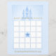 Blue fairytale baby shower bingo for a shower game for a boy or girl in blue and gold, with a magical blue castle.