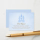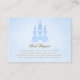 Blue fairytale castle baby shower "book request" insert card for a boy in blue and gold, with beautiful script headline. Text reads