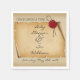 Step back in time to an era of chivalry and romance with our Once Upon A Time Fantasy Medieval Aged Scroll Wax Seal Wedding Napkins. Crafted with exquisite attention to detail, this napkin captures the essence of a bygone era, featuring rich, aged (faux) parchment adorned with black accents and an authentic red wax seal with string.