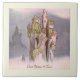 fairyland vintage of an enchanted mountain above the clouds with little houses and windows, drooping green or brown roof tops and narrow outside stairs leading to a mountain cottage doorway among other cute cottages, and other cute and enchanting cottage mountains above the misty blue and white clouds in the sky.