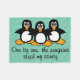 "One by one, the penguins steal my sanity" - 3 cute and funny black and white penguins with orange feet with a silly and humourous saying / quote with a cyan / turquoise background graphic. Change the background colour to your choice. Fully customizable!