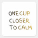 A simple, illustrative text-based design featuring the motivational quote "ONE CUP CLOSER TO CALM." The hand-drawn style typography uses a subtle black to golden-brown gradient against a light gray background, making it perfect for a minimal aesthetic on a sweatshirt, t-shirt, mug, or as a cozy, inspiring graphic for coffee and tea lovers.
