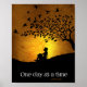 “One Day at a Time” Live in the present, and don’t worry about tomorrow. Minute by minute, hour by hour, step by step – one day at a time. It’s a favourite slogan used in recovery and 12 step programs … suggesting we gradually heal and become free of our addictions ‘one day at a time’. Design: Female silhouette at peace, sitting under a tree.