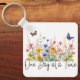 One Day at a Time Inspirational Quote Wildflowers Keychain