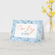 This 7” x 5" folded greeting card features placeholders for any name, and time sober. Two fields for number and length. Examples: one, year; 30, days; 6, months. The non-editable front features the greeting, "One day at a time," in turquoise and orange with an abstract powder blue floral background.