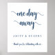 Modern Rustic, One day away, Wedding Rehearsal Dinner Welcome Poster, in Navy Blue script.