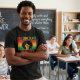 Show off your pride and passion for education with this "One Dope Black Teacher" t-shirt. This powerful design features a vintage, distressed Pan-African flag background (red, yellow, and green) with a silhouette of an Afro hairstyle and a raised power fist in the center—symbolizing strength, unity, and culture.