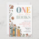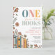 This 1st birthday invitation features books, flowers, and "one for the books" to invite friends and family to celebrate your little one.