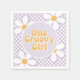 One groovy girl! Retro chequered print with Daisies Birthday party napkins in purple.