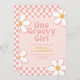 One Groovy Girl Retro Check Pink Daisy Invitation