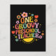Playful retro lettering with flowers and hearts celebrating preschool teachers with creativity and joyful classroom spirit. A cheerful statement for educators who love teaching young children in an early learning environment.