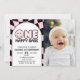 One Happy Babe Groovy Pink Check Photo Birthday Invitation