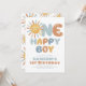 One Happy Boy! A bright and colorful sun themed boys 1st birthday invitation in blue, orange and yellow. Available in other colors.