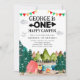 Cute ONE Happy Camper Forest Mountain Woods Camping 1st Birthday Invitation