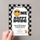 A cute happy birthday invitation design. A cute "One happy dude" happy themed first birthday party invitation. A happy dude themed birthday invitation that can be customized to your details.