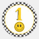 One Happy Dude Smile Emoji Chequered First Birthda Classic Round Sticker
