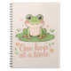 Stay inspired with this spiral notebook showcasing a cute frog perched on a lily pad alongside the uplifting phrase “One Hop at a Time.” The vibrant front cover design blends whimsy and motivation, perfect for students, journalers, or anyone who loves cozy frogcore vibes.