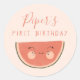 One in a melon first birthday party stickers. Edit this template to create your own birthday party sticker. Made to match our "One In A Melon Little Sweetie First Birthday Party" invitations. View the collection linked on this page for matching items or visit our store for more birthday party designs.