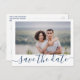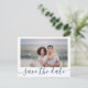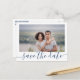 Send our horizontal save the date postcards with one picture to let your guests know to block off your wedding date. The colours for all text are customizable - you can choose a colour from one of the options shown, or click "Edit Design" where you can change each text box to whatever colour you would like. The back side has coordinating colour scheme, but you can easily change the colour of the background and/or wording if you want to customize your save the dates further. Be sure to check out our large selection of photo save the date cards, postcards, and magnets by browsing our Picture Save the Date collection!