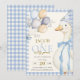 Perfect for little boys, this blue edition brings a classic and playful feel to your celebration. Whether you're planning a rustic outdoor picnic, a cozy backyard gathering, or a whimsical farm-themed party, this invitation sets the stage for an unforgettable first birthday. The delicate watercolor illustrations and vintage gingham pattern create a warm, storybook-like atmosphere that will have guests excited to celebrate your little one's big milestone.