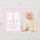 One Silly Goose Pink Gingham 1st Birthday Photo Invitation