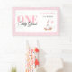 One silly goose and pink gingham girl's 1st birthday floral banner. A whimsical floral banner celebrating a little girl's first birthday features a charming goose wearing a pink birthday hat and bow, elegantly framed in a soft white border with rounded edges. The goose sits atop a beautiful bouquet of flowers, with a pink balloon displaying the number 1 gently floating from its tail. The playful phrase "One silly goose" adds to the design, which is beautifully accented by a delightful pink and white gingham border.