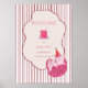 Welcome guests with this charming birthday sign featuring a sleepy pink kitty in a party hat, a tiny birthday cake, striped background details, and a vintage-style frame. Perfect for your entrance, dessert table, or party display.