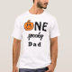 Orange One Spooky Dude Dad Halloween Matching Family Tshirt for a 1st Birthday Party - Celebrate your little dude's big one in a spooky and fun way this Halloween season with this cute orange and black retro smiley face pumpkin 1st Boo-Day Party theme. Featuring black, orange, and white classic Halloween colours. A smiley face pumpkin with lightning eyes adds to the fun, retro spooky season aesthetic. The whole family can wear matching tees to celebrate the little dude's first milestone birthday!