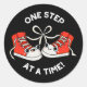 One Step At A Time Funny Sneaker Pun Dark BG Classic Round Sticker